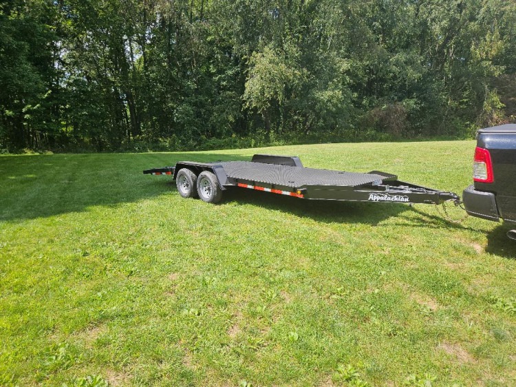 Our car hauler is 18ft. plus 2ft. dove tail long and 82 in. wide. It has a 10,000lbs GVWR. So, it can haul just about any car, truck or suv. It has a diamond plate cover on the front to protect from anything coming off the road or your tires. It can as be used to haul large or heavy items or larger equipment. ramps and spare tire are included with rental. Tie downs and hitch available upon request.