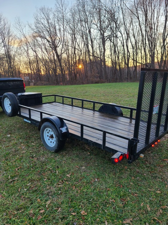 our 14 ft. landscape trailer is 14 ft by 76 in. and has the capability to haul up to 2,000lbs. it is great for any small project around the house or to pick up from the hardware store. This trailer is also great to haul a utv or 3 four wheelers. Trailer also comes with a spare tire and jack in case of a flat. Tie downs and hitch available upon request.